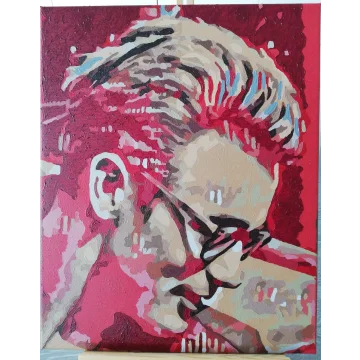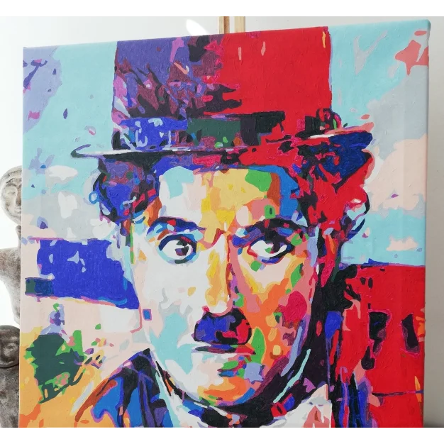 Picture of Charley Chaplin was first digitally altered and then painted on canvas.