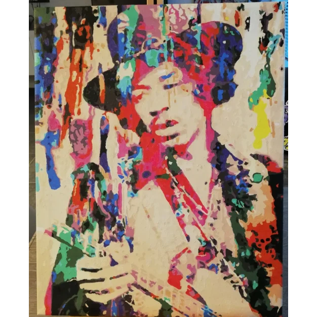 The picture of Jimi Hendrix was first digitally altered and then painted on canvas.